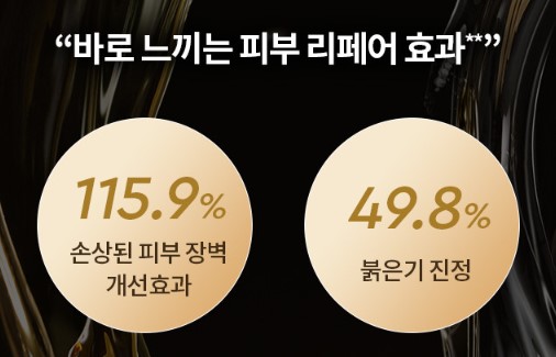 리페어 효과의 투명 앰플과 항산화 브라이트닝 효과의 갈색 앰플을 한 병에 담아 사용 직전 활성화해 각 성분의 효능이 피부에 온전히 전해지도록 2-in-1 앰플로 고안한 부분 또한 업그레이드 포인트 입니다.